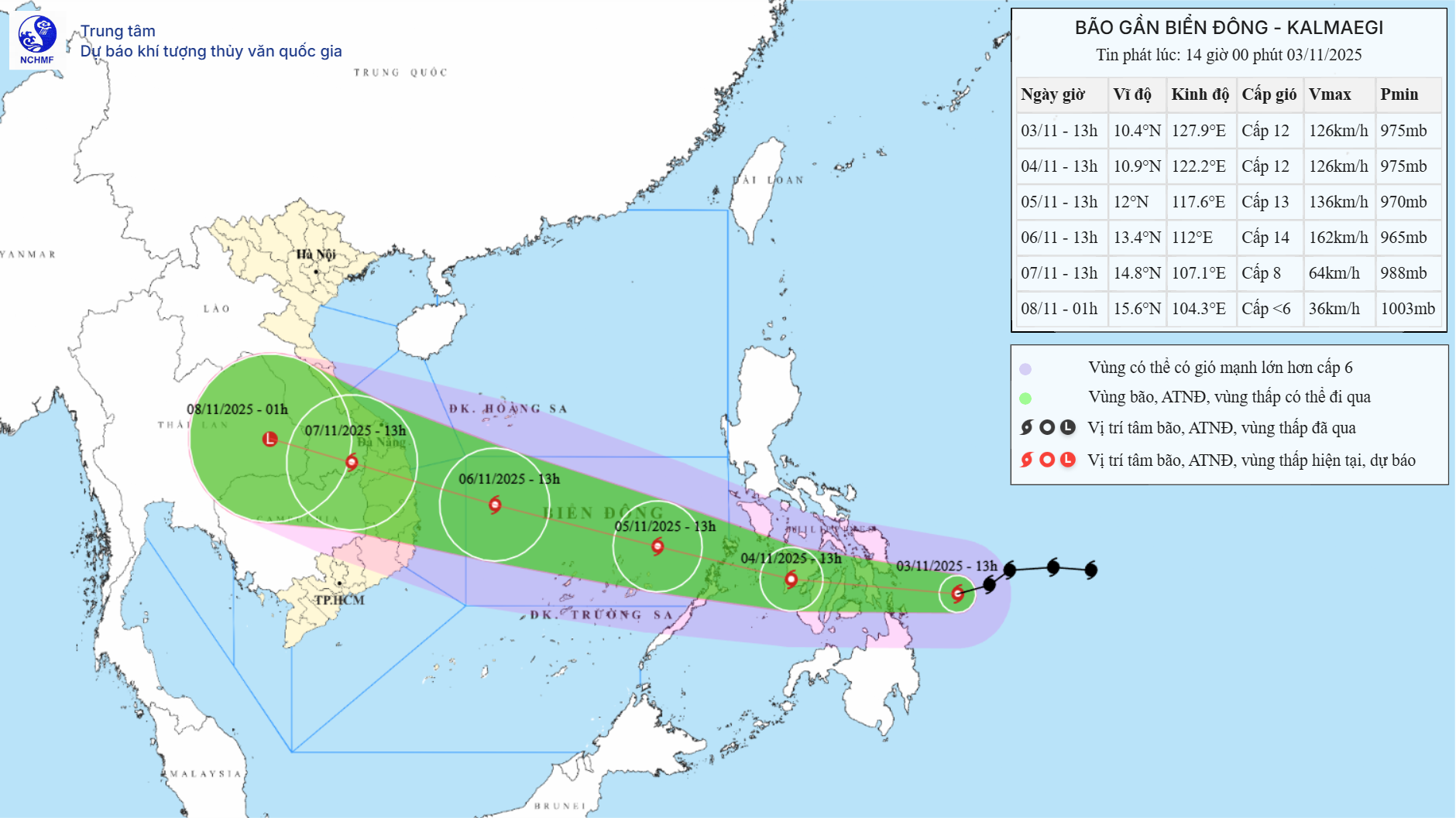 Bão KALMAEGI đang hoạt động trên vùng biển phía Đông miền Trung Phi-líp-pin. Sức gió mạnh nhất vùng gần tâm bão mạnh cấp 12 (118-133km/giờ), giật cấp 15. Di chuyển theo hướng Tây Tây Nam với tốc độ nhanh khoảng 25km/h. Khoảng đêm 04, ngày 01/11 bão KALMAEGI sẽ đi vào Biển Đông trở thành cơn bão số 13 trong năm 2025. Khi đi vào biển đông bão chủ yếu di chuyển theo hướng Tây Tây Bắc mỗi giờ đi dc 20 – 25km..png)